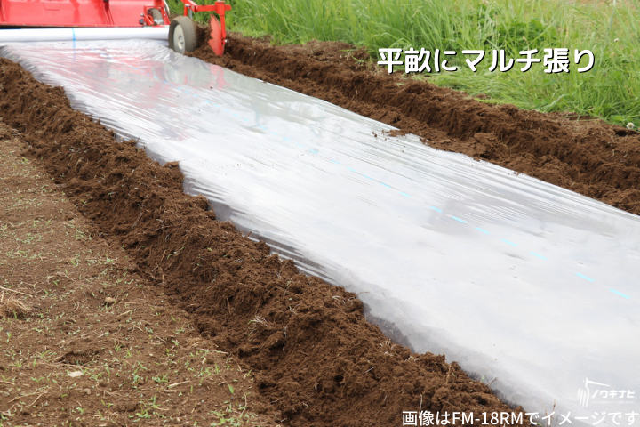 アグリアタッチ研究所の平うねマルチャー:トラクターロータリーに接続してマルチ貼りが簡単に!FM-18RMが便利!