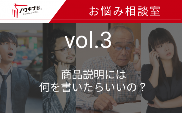 ノウキナビお悩み相談室〜商品説明には何を書いたらいいの?〜