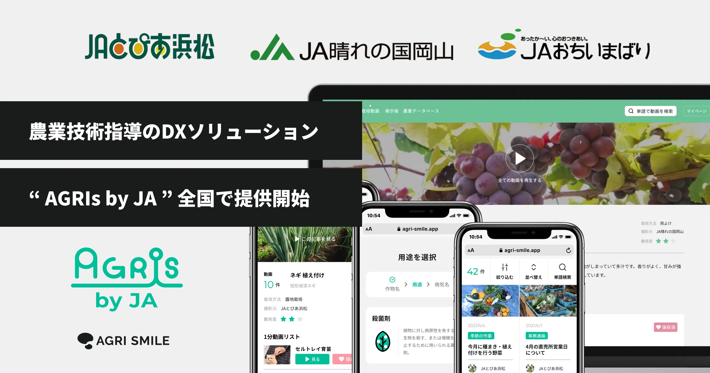 3つの農業協同組合とともに開発・運営する農業技術指導のDXソリューション「AGRIs by JA」を全国で提供開始