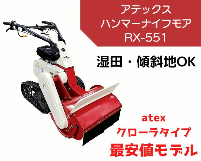 【2024年更新】クローラ式ハンマーナイフモア最安価モデルアテックスRX-551!