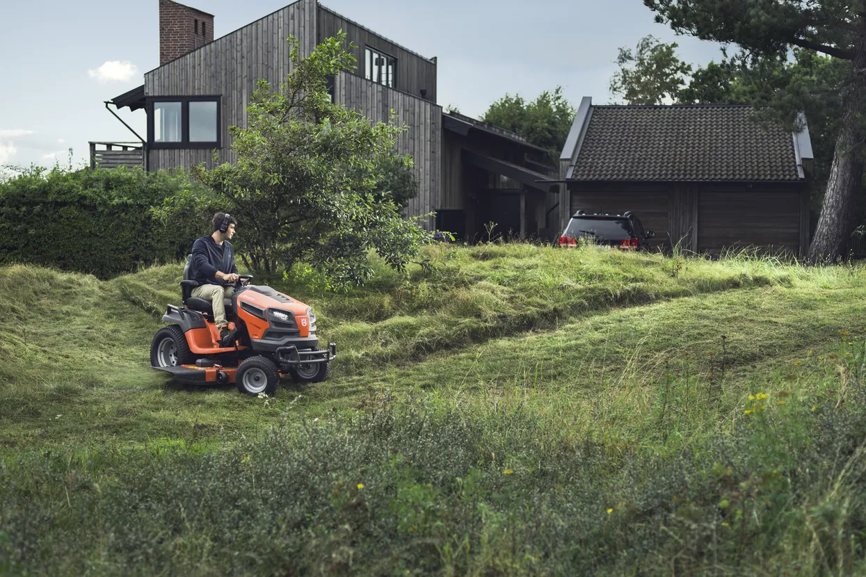 ガーデントラクターのライダー(メーカー:ハスクバーナ)は、小・中規模用、大規模用、大規模用(キャビン付き)と多様なラインナップ。草刈りをする面積によって、最適なサイズを選ぶことができます。アクセサリーも豊富なので、除雪作業もできる優れもの。 -
