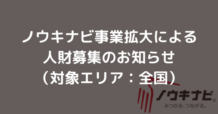 ノウキナビ事業拡大による人財募集のお知らせ(対象エリア:全国)