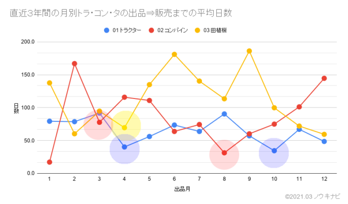 ノウキナビにはたくさんの中古農機販売店さんに加盟していただいております。ありがとうございます。 ところで、 “他社が取り扱っている中古農機が出品された後、いったいどのぐらいの期間で売れているのか・・・” 気になりませんか? ノウキナビのデータ... -