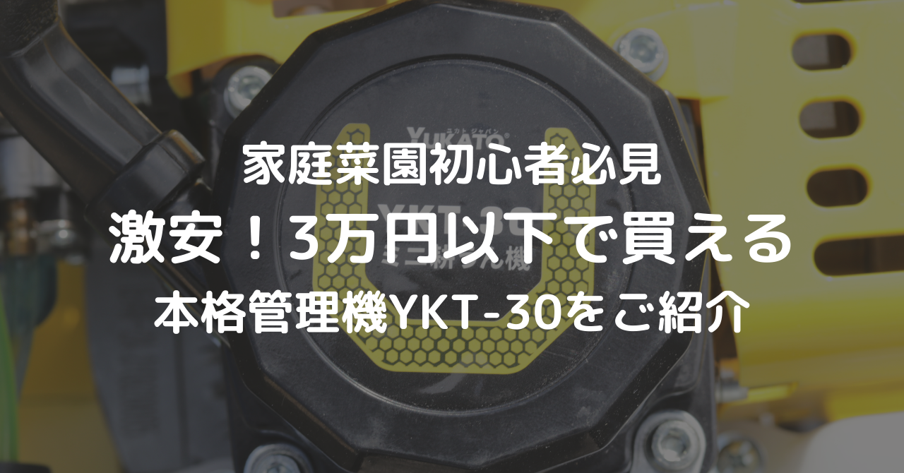 本日は、「家庭菜園初心者必見、激安!3万円以下で買える本格管理機YKT-30をご紹介」ということで、とある管理機(ミニ耕運機)のご紹介をしたいと思います。