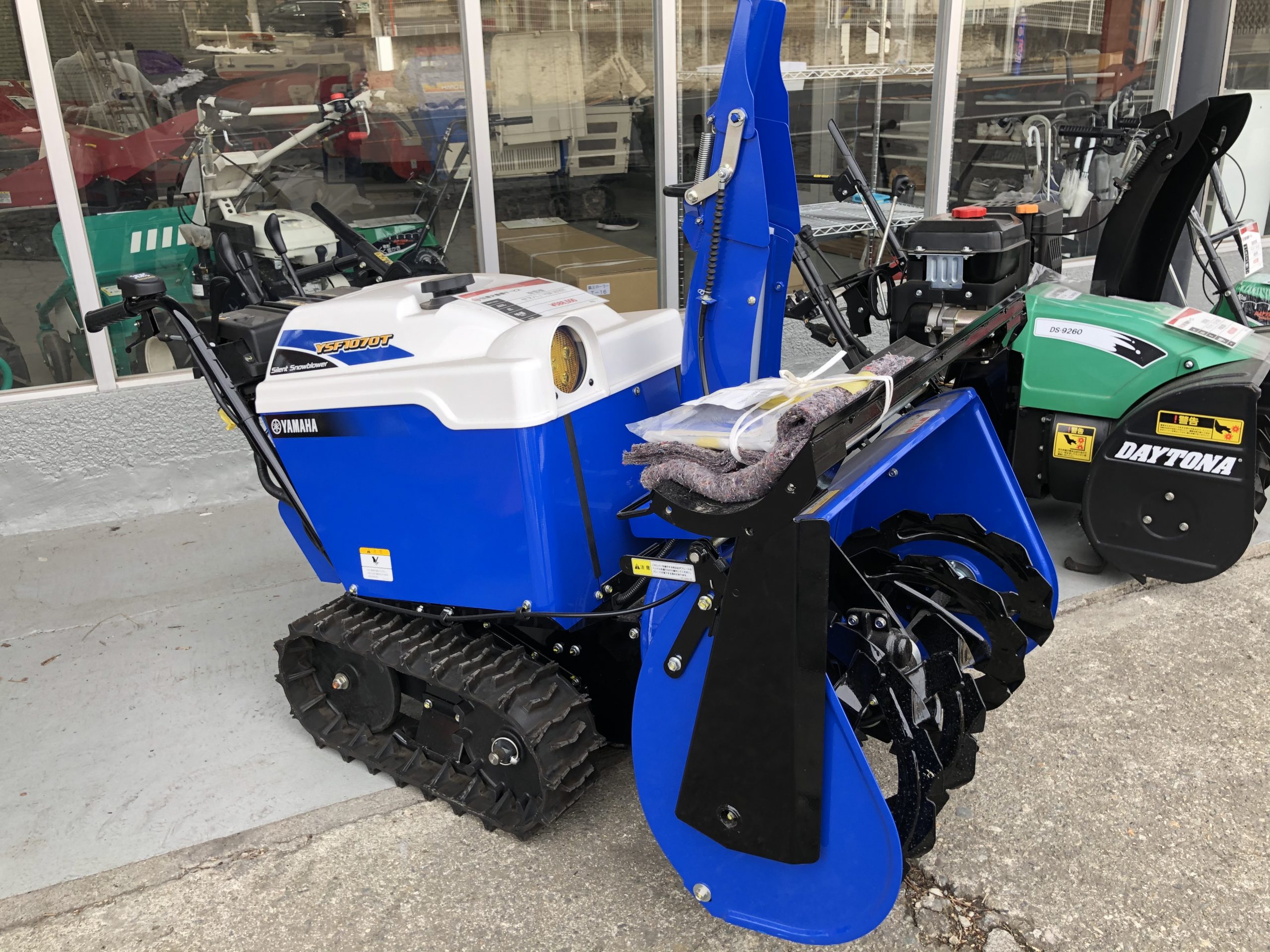 除雪機は屋内に保管しないと、直射日光や風雨で劣化してしまいますが、屋内に保管する場合でも上からカバーをかけるようにしてください。