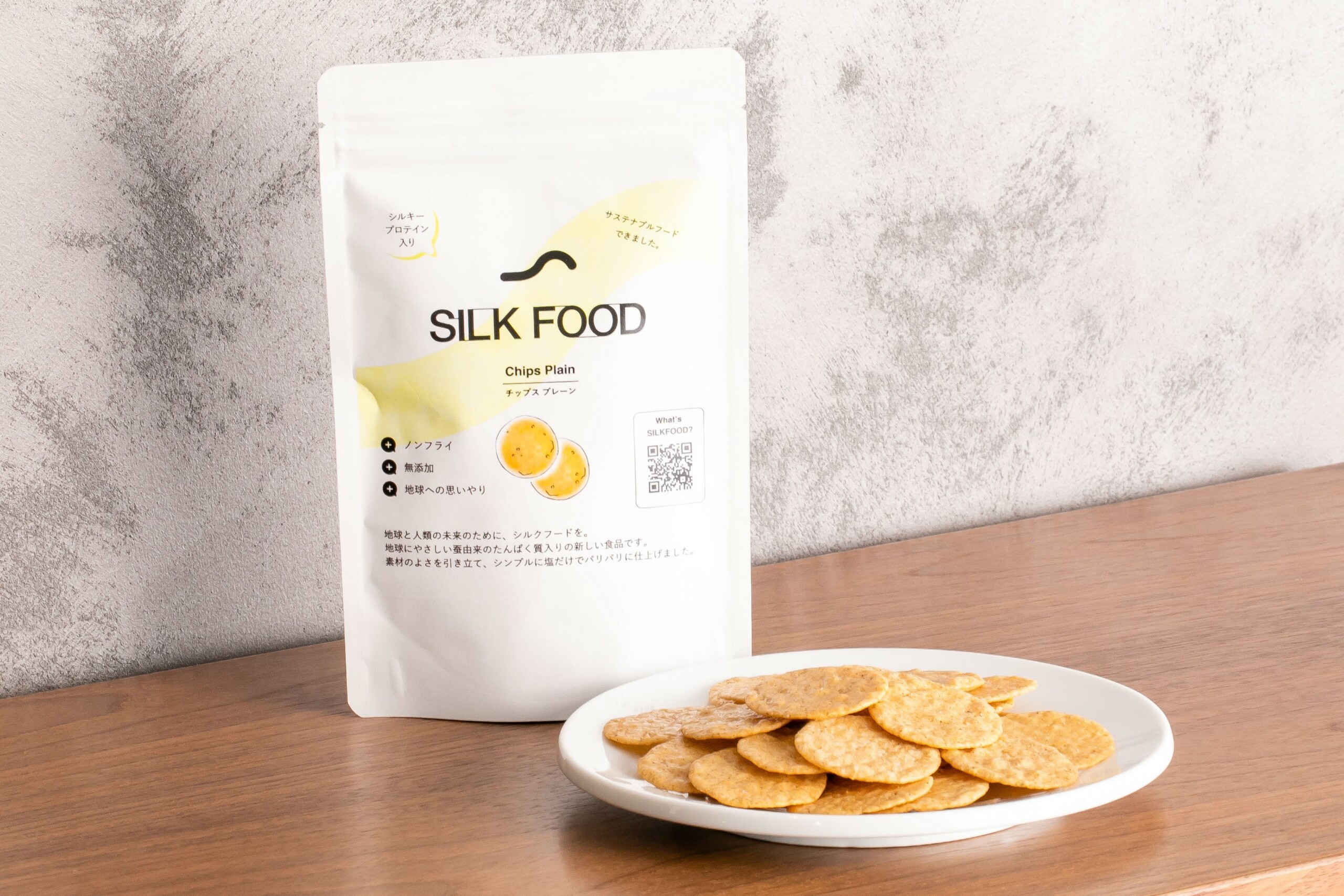 今回ECショップ及び一部の実店舗で販売される「SILKFOOD チップス」は単品550円(税込)で、1袋30g入りです。なお、ECショップでの販売は2袋単位となります。