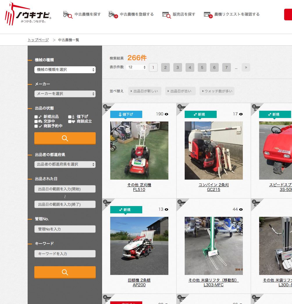 改めまして、ノウキナビはインターネット上で「上質な」中古農機の売買情報を取り扱うマッチングサイトです。