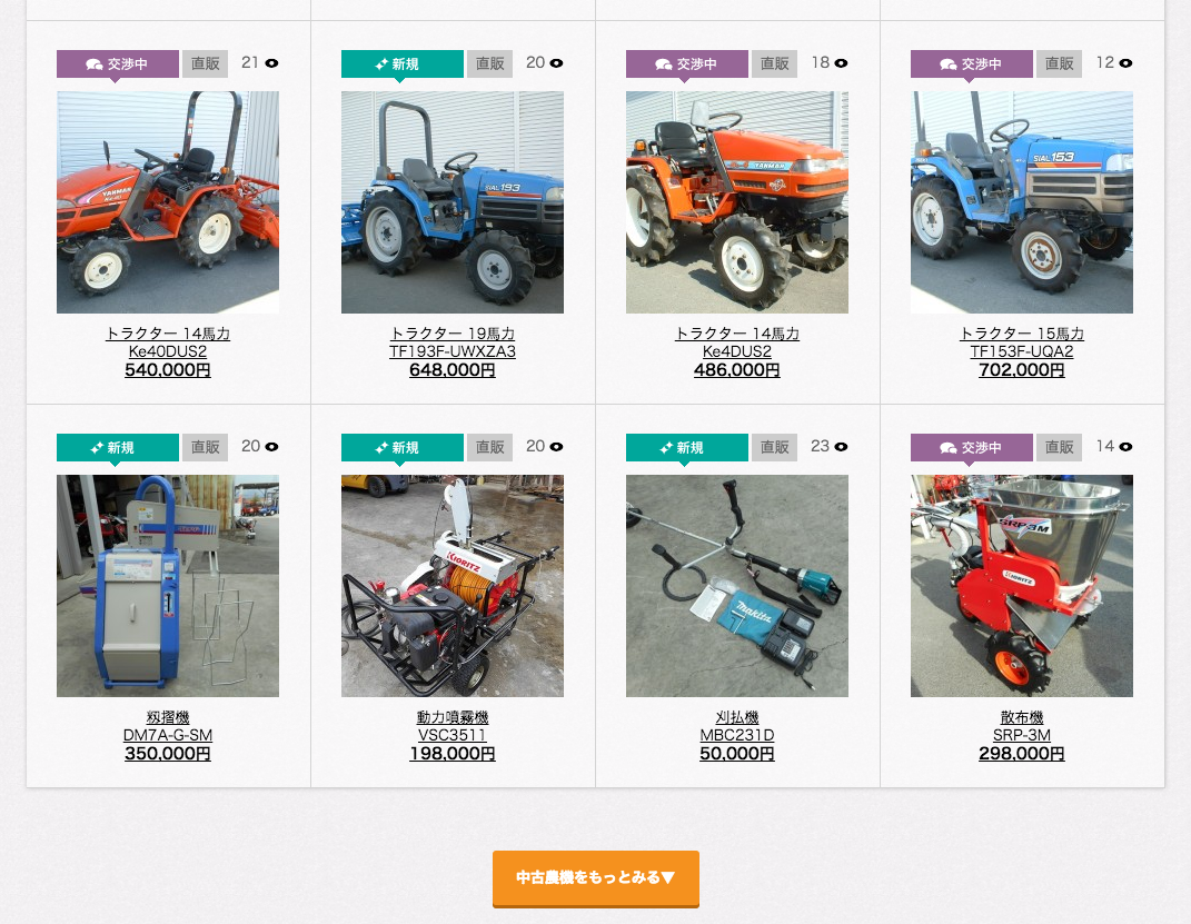 この体験から、お客様と一緒にパソコンでノウキナビの画面を見ながらお話をして、希望の中古農機があれば良いし、なければ新品をオススメすることも出来る。
