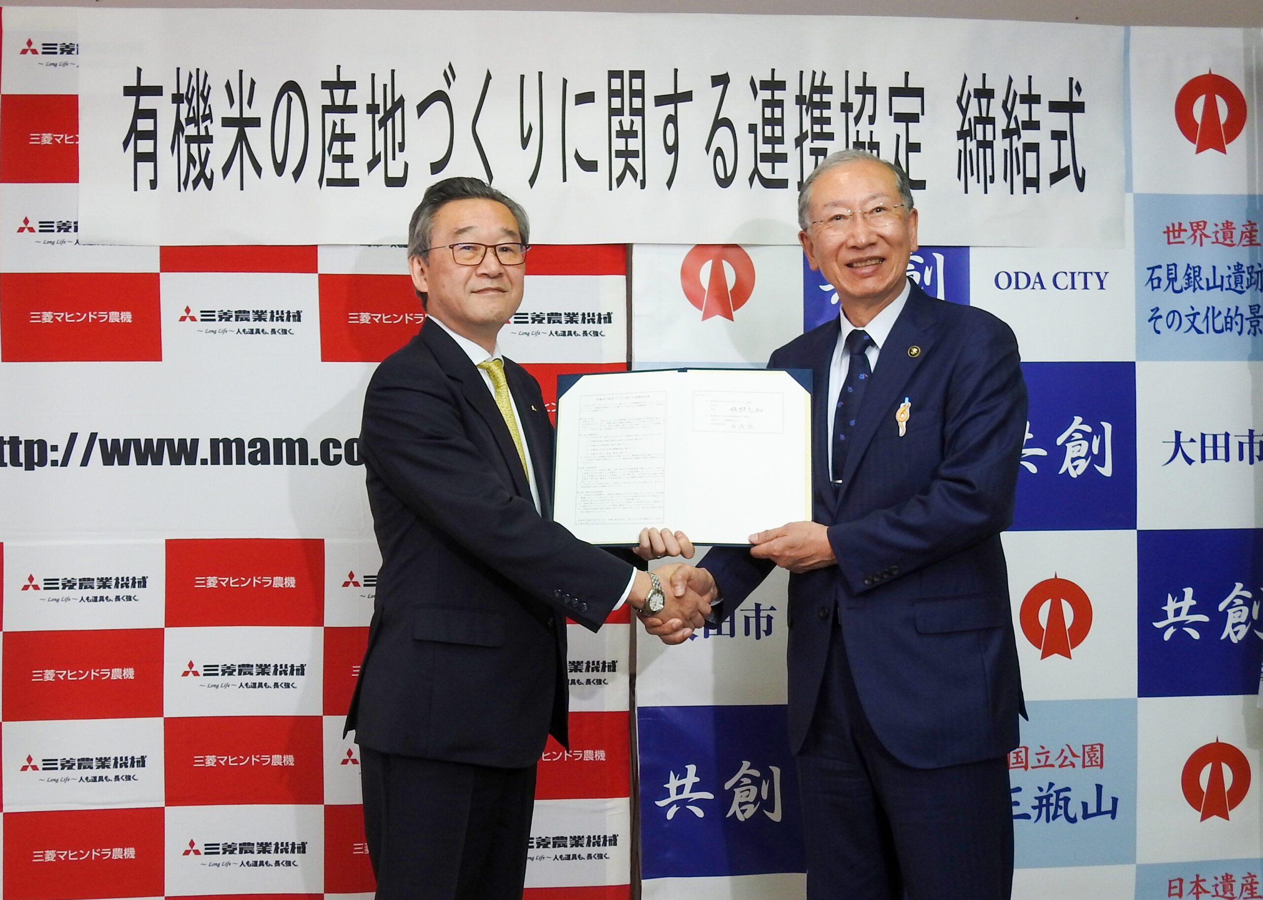島根県大田市と三菱マヒンドラ農機が有機米の産地づくりに関する連携協定を締結