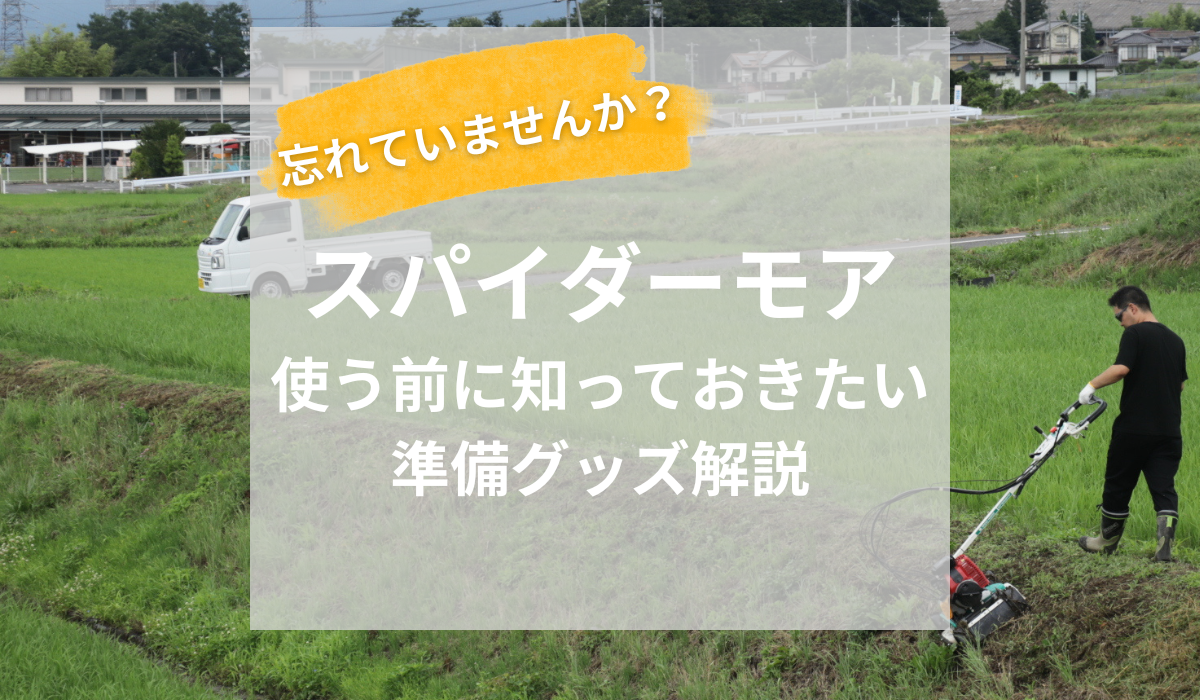 農繁期に入り、「ノウキナビ」でも毎日のようにご注文をいただいているスパイダーモアですが、ご自宅に届いてすぐご使用いただけるよう、準備しておきたい必需品、あったら便利なアイテムをご紹介します。