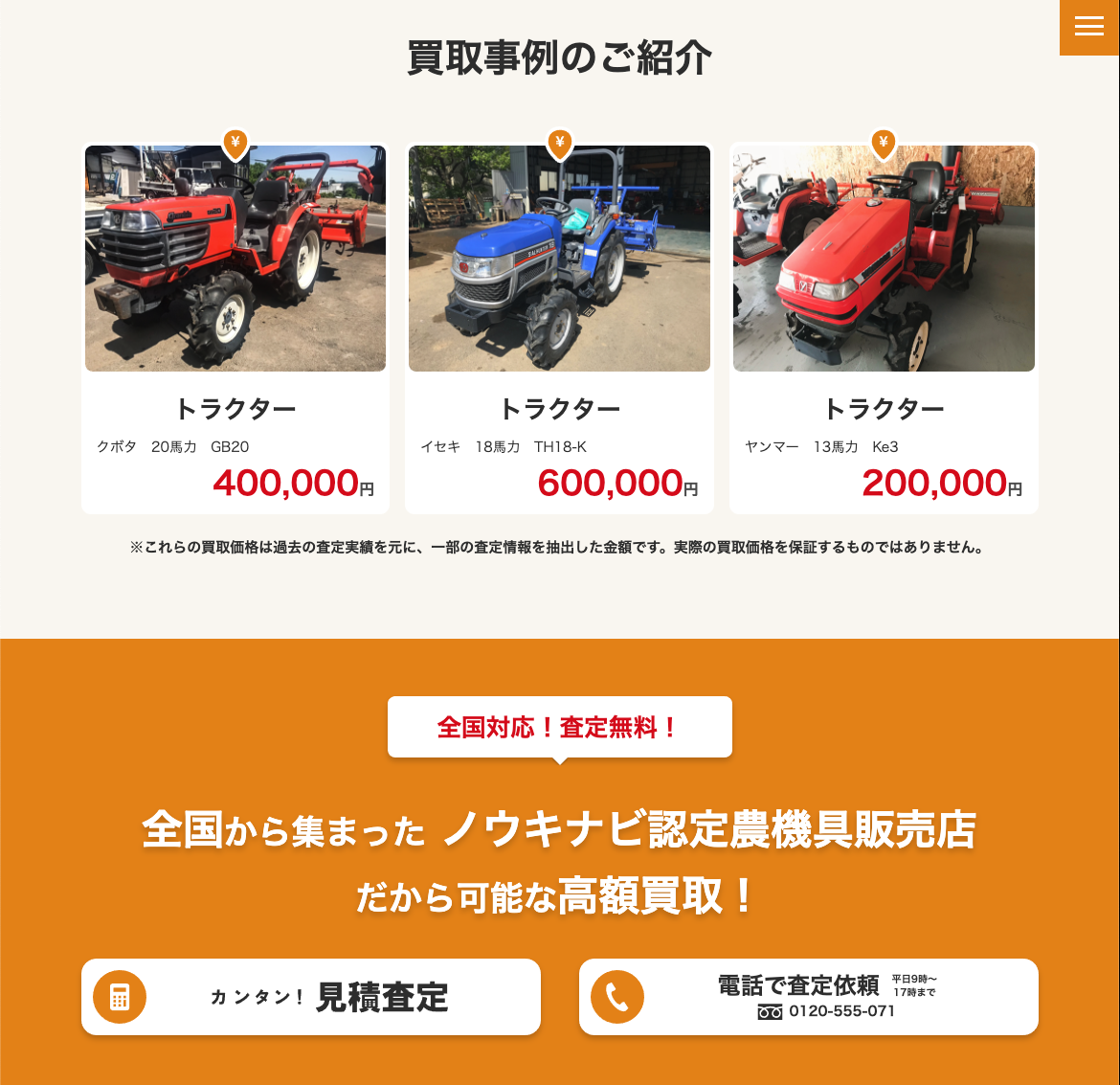 農機具の高価買取中のノウキナビ中古農機買取サービスはこちら