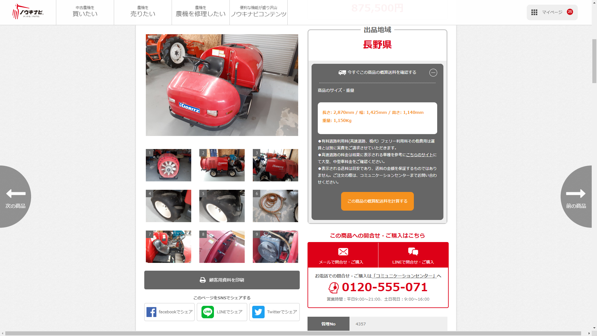 1.販売店様にサイズ、重量、商品所在地を入力していただくことで、ノウキナビ会員は商品詳細ページ上で概算での送料が即座に確認できるようになります。