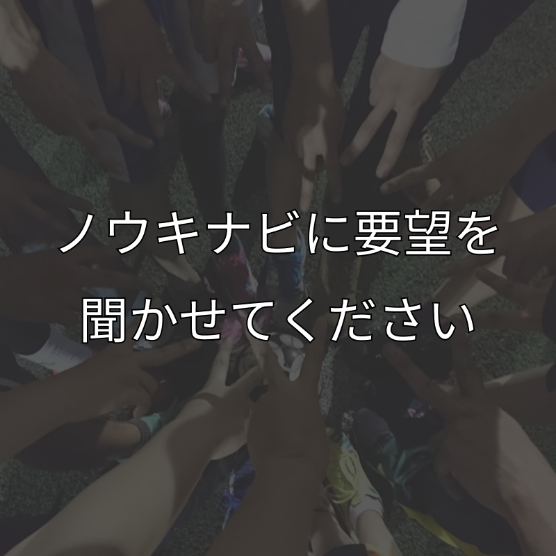 何か要望等ありましたら遠慮なくノウキナビコミュニケーションセンターまでお問い合わせください。