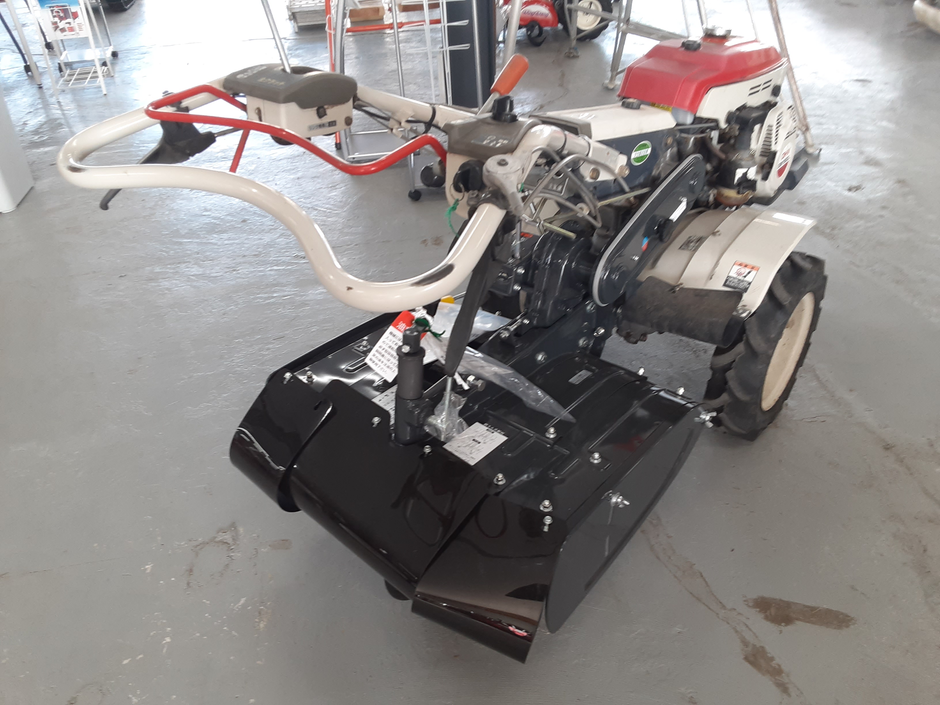そんなお客様のご要望に応えられる農機を1つでも多く取り揃え、春からの畑仕事に役立ててもらいたい…という事で、展示場に置いてあるティーラーにこの度、新品のロータリーを装着し展示をする運びとなりました!