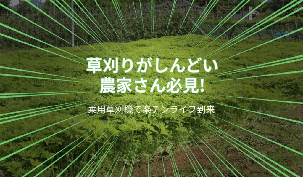 草刈りがしんどい農家さん必見!乗用草刈機で楽チンライフ到来